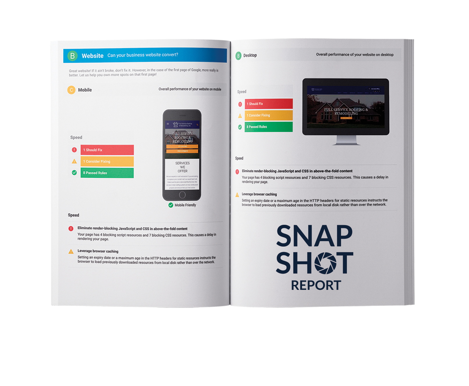 Our Marketing Snapshot Report will analyze and grade your business across 6 important areas of marketing.